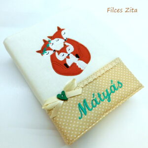 Pamut csipkével és fa gombbal díszített. Az albumra készült borító 3 rétegű, bélelt, kellemes tapintású. Az ár tartalmazza magát a fotóalbumot is.