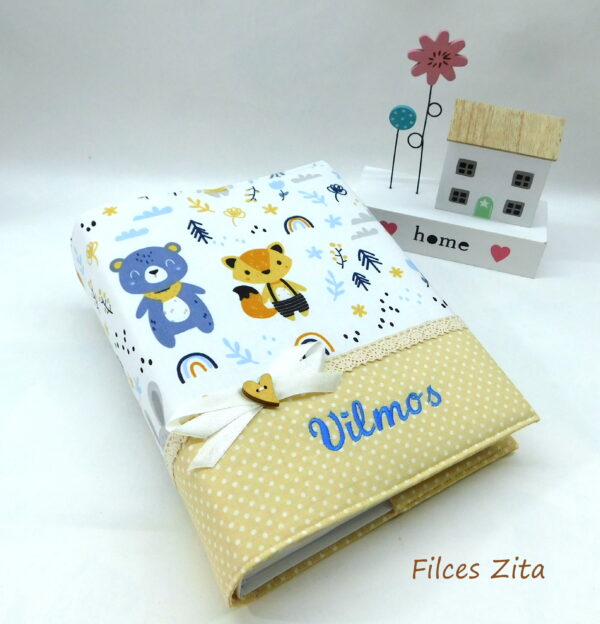 Pamut csipkével és fa gombbal díszített. Az albumra készült borító 3 rétegű, bélelt, kellemes tapintású. Az ár tartalmazza magát a fotóalbumot is.