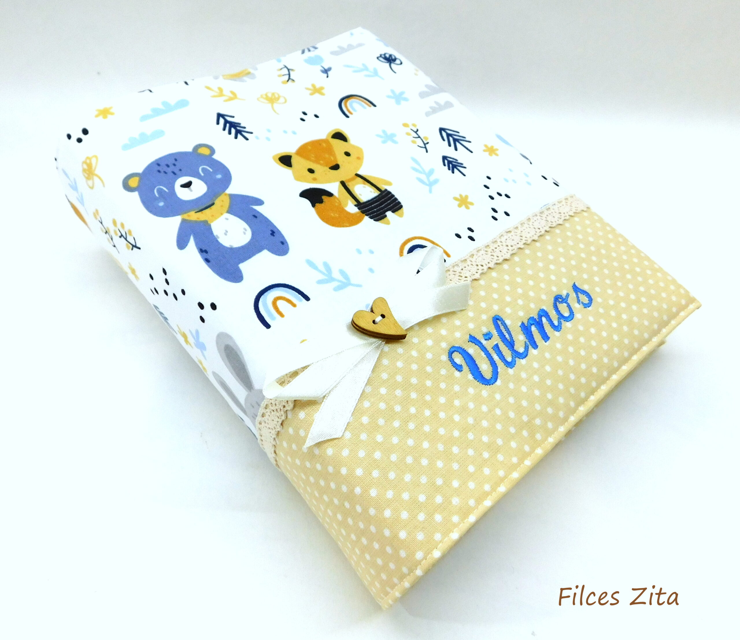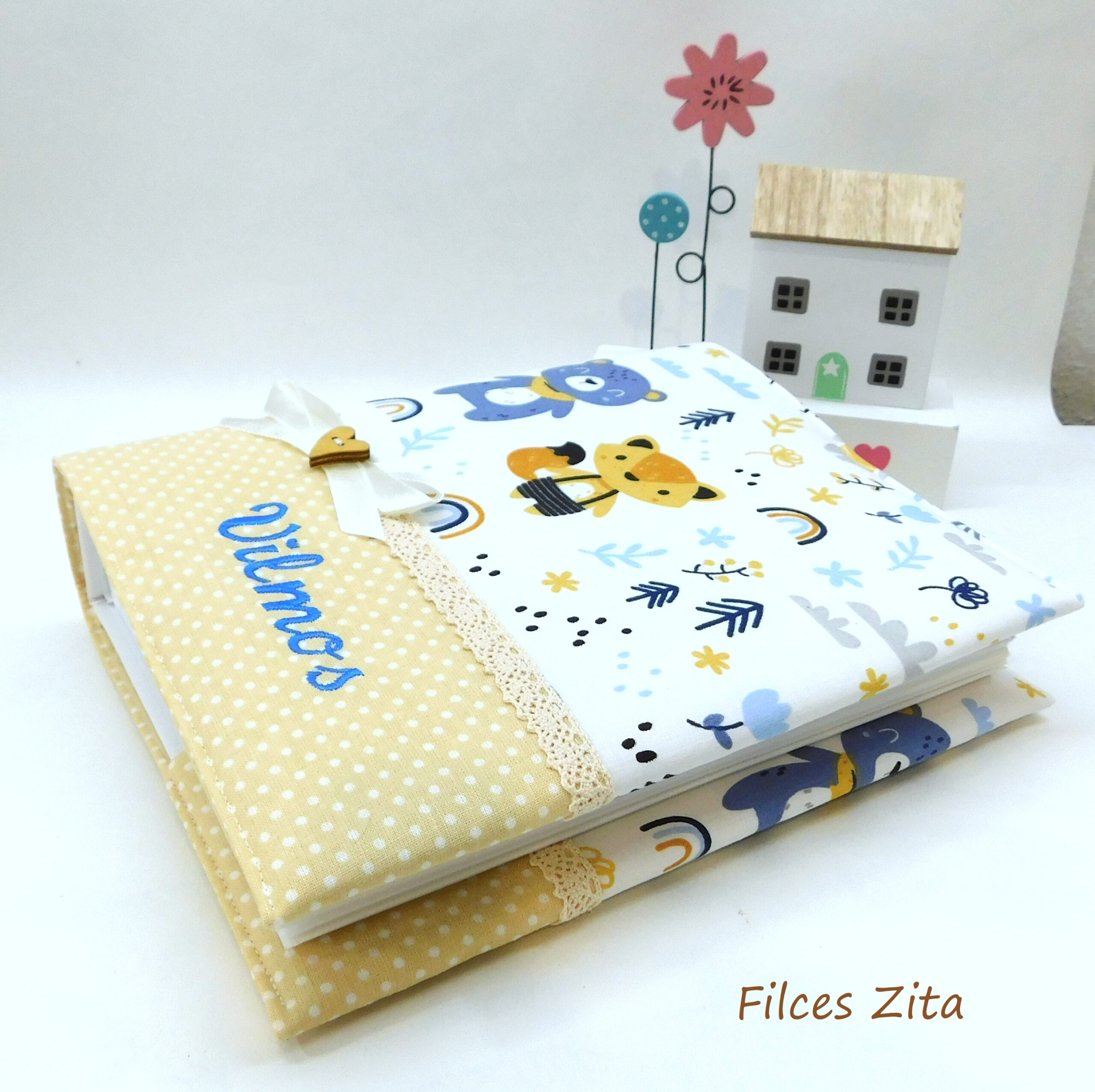 Hozzáillő babakockát, pelenkarendező táskát és egészségügyi kis könyvre borítót is tudok készíteni. Más szín összeállításban is kérhető.
