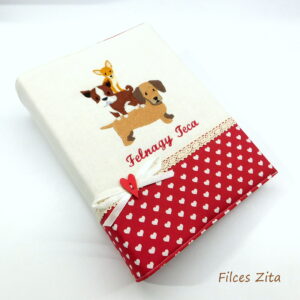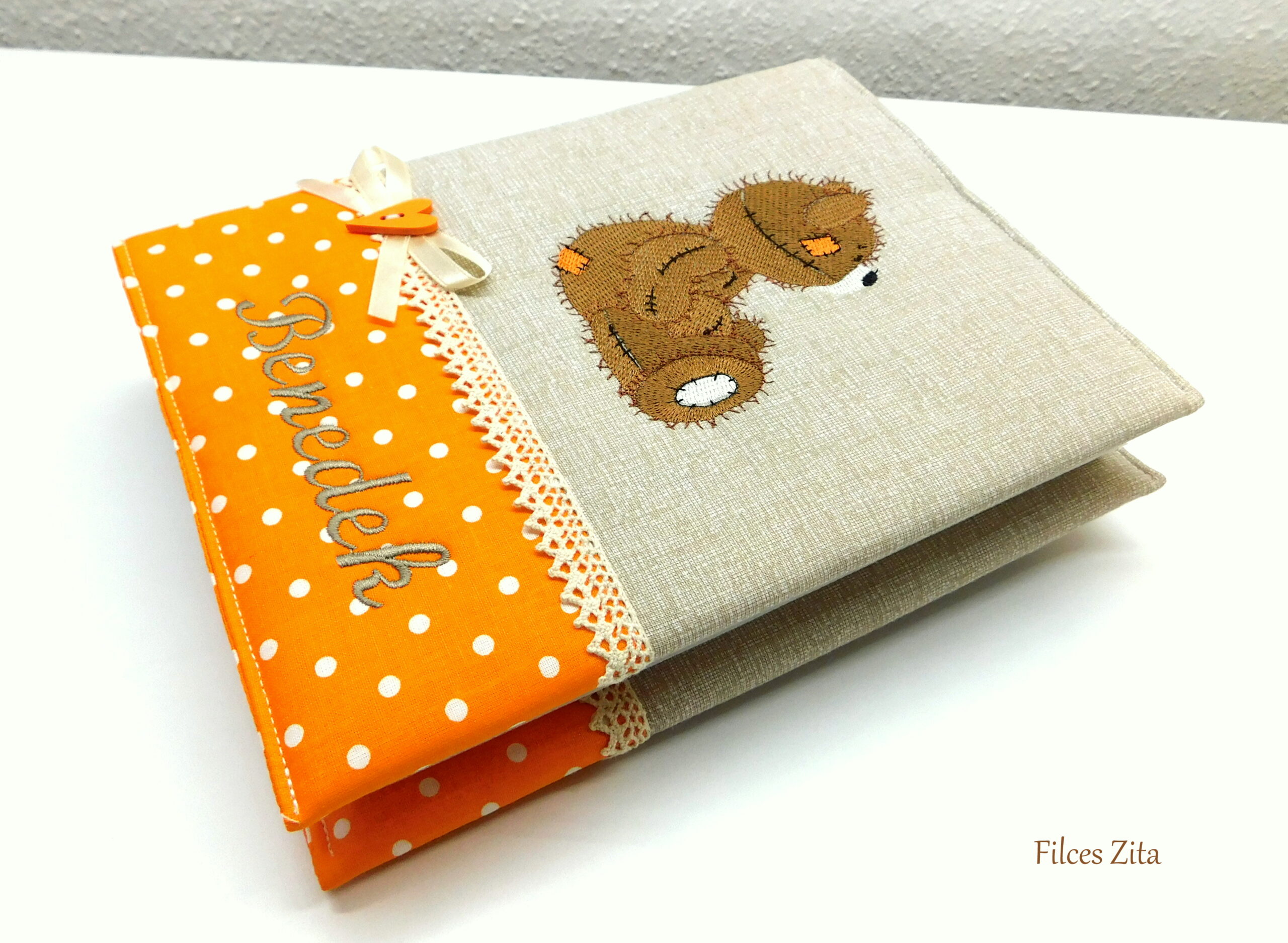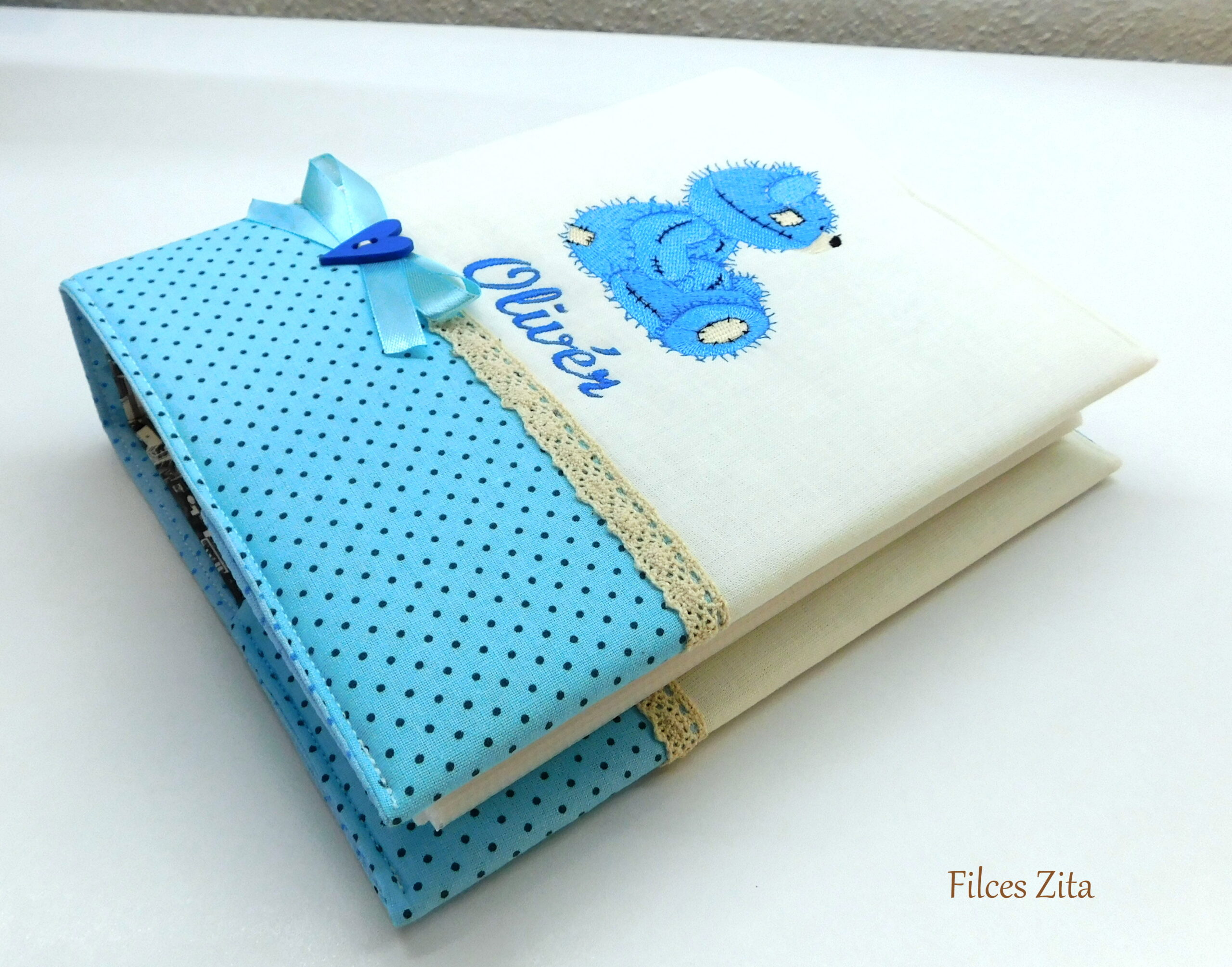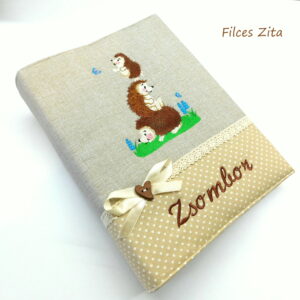 Pamut csipkével és fa gombbal díszített. Az albumra készült borító 3 rétegű, bélelt, kellemes tapintású. Az ár tartalmazza magát a fotóalbumot is.
