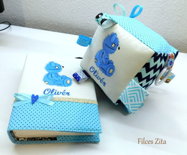 Hozzáillő babakockát, pelenkarendező táskát és egészségügyi kis könyvre borítót is tudok készíteni.  Más szín összeállításban is kérhető.